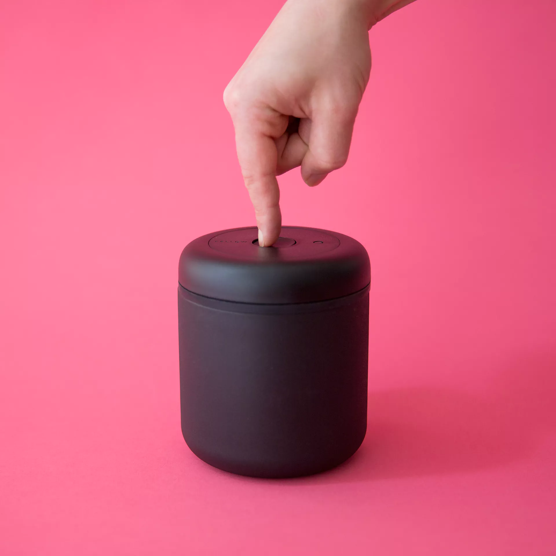 Et si on pouvait mettre nos grains « sous-vide d’air » grâce à une boîte ?Le système Atmos se débarrasse de l’air, de l’humidité & des odeurs pour ralentir le vieillissement et l’oxydation de vos grains.Tournez le couvercle d’avant en arrière jusqu’à ce que la bague verte apparaisse! Appuyer sur le bouton central pour ré-ouvrir la boîte.