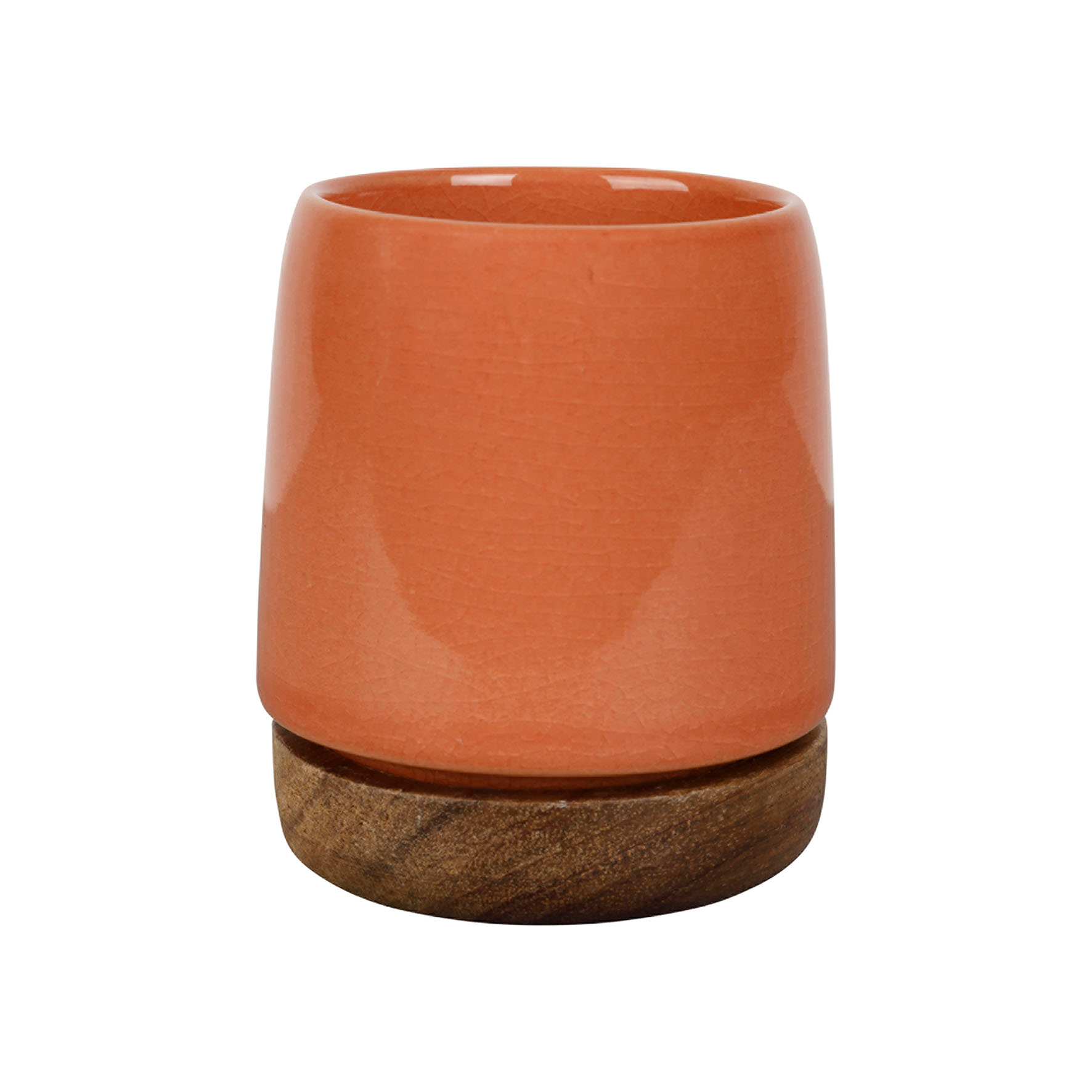 Alliant charme brut et modernité, ce gobelet à la finition craquelée couleur terracotta repose sur une base en bois d’acacia qui lui confère une belle stabilité. Parfait pour un café court ou un thé concentré, il deviendra vite un indispensable de vos instants de dégustation.